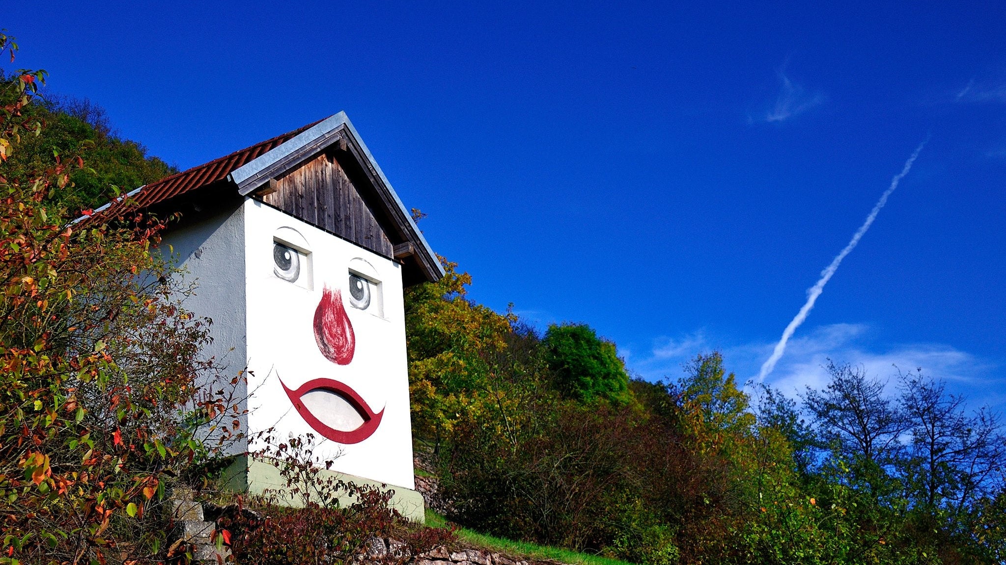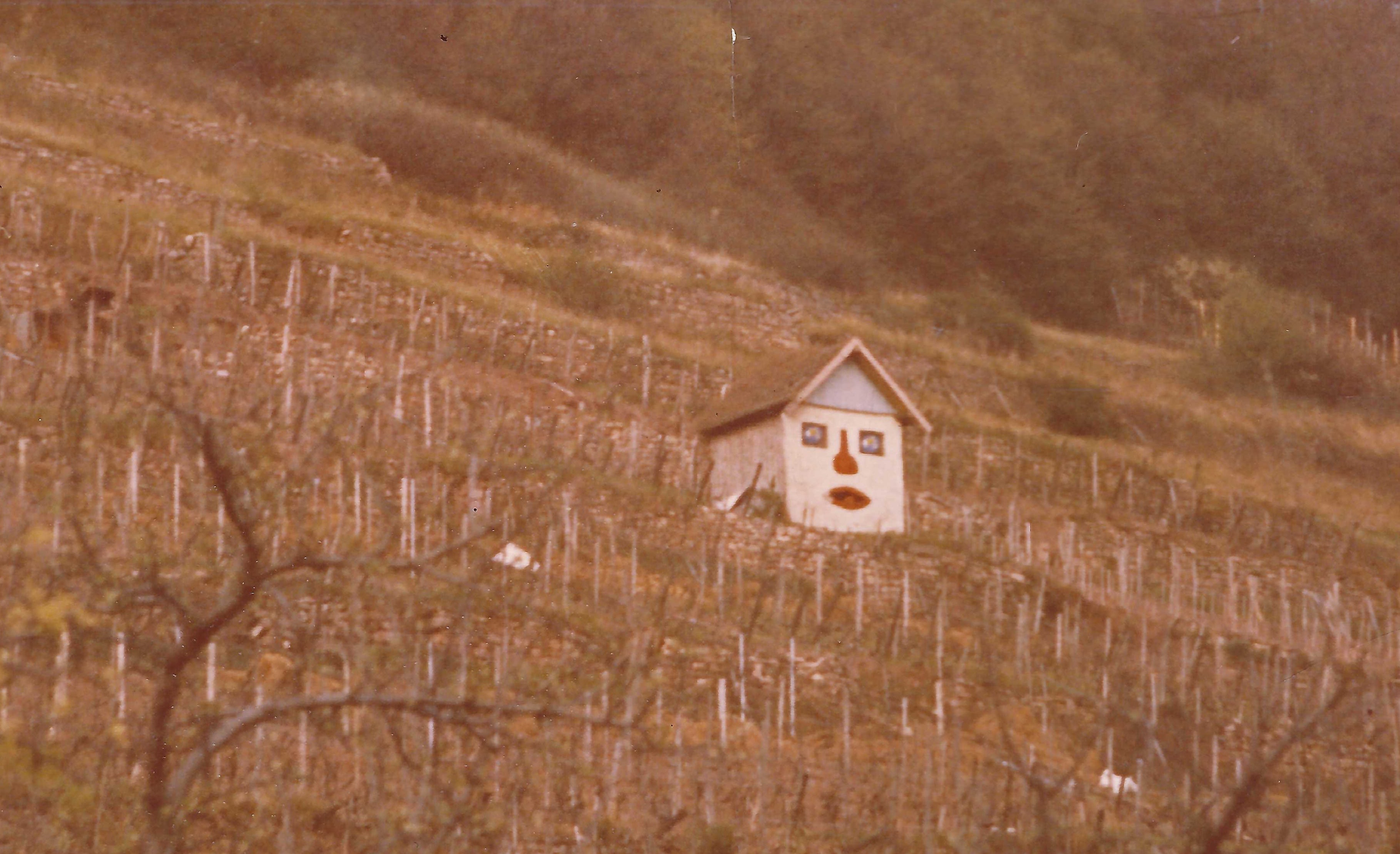 in der Lage Ziegelangerer Ölschnabel steht es bis heute: unser Weinhäuschen mit dem lachenden Gesicht. Freundlich blickt es ins Maintal hinab und ist für viele längst ein kleines Wahrzeichen geworden.